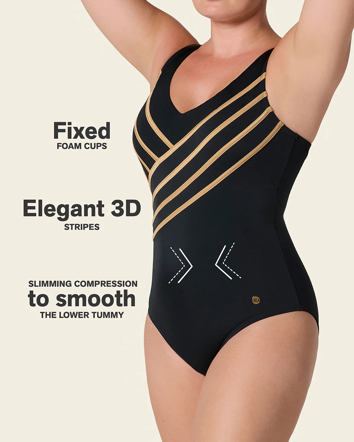 A sophisticated look you'll love! This one-piece swimsuit covers everything you want it to and has built-in slimming compression to smooth out your tummy. The 3D stripes on the top are what make this swimsuit stand out, but it also has smoothing coverage on the sides. The plunge back design shows a little extra skin while keeping you comfy. The straps are adjustable for a perfect fit. Plus, it moonlights as a bodysuit!